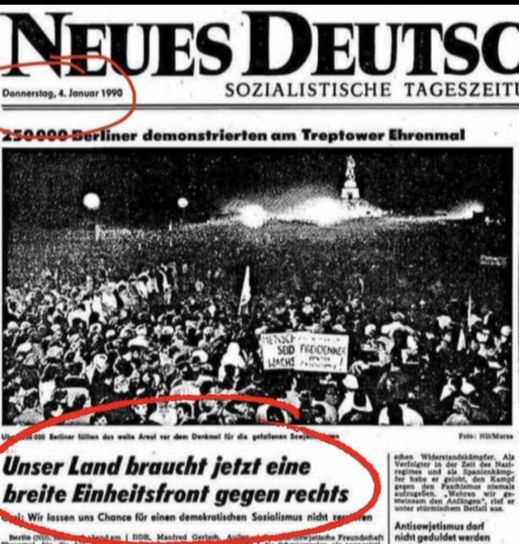 Der Kampf gegen «Rechts» war eindeutig das dominierende Thema der letzten Jahre. Ich bin an dieser Stelle immer leicht irritiert. Fakt ist doch, dass die NSDP wie die SED das Wort "Sozialistisch" enthält, oder? Und der Sozialismus ist bekanntlich in der Theorie die Vorstufe des Kommunismus und folglich politisch links einzuordnen, oder? Wenn ich dann in einer Zeitung vom 15.6.1934 lese, "Der Feind steht «Rechts»", dann impliziert das doch, dass die Nationalsozialisten mit hoher Wahrscheinlichkeit eben nicht «Rechts», sondern Links waren, oder?